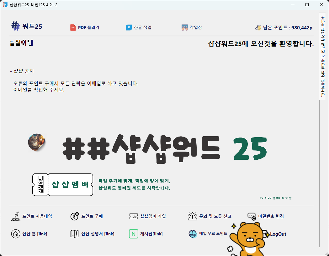 | 샵샵워드25 공식 업데이트 (0) | 2024.12.24 |