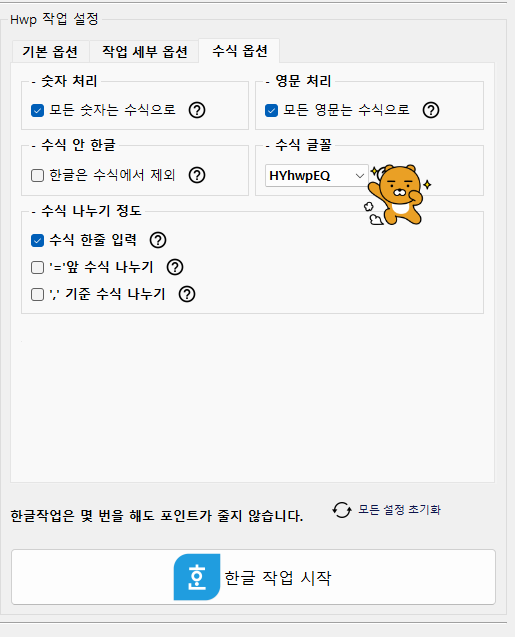 그게 차이가 없는 듯하여 HYhwpEQ 를 기본으로 세팅을 하였는데..