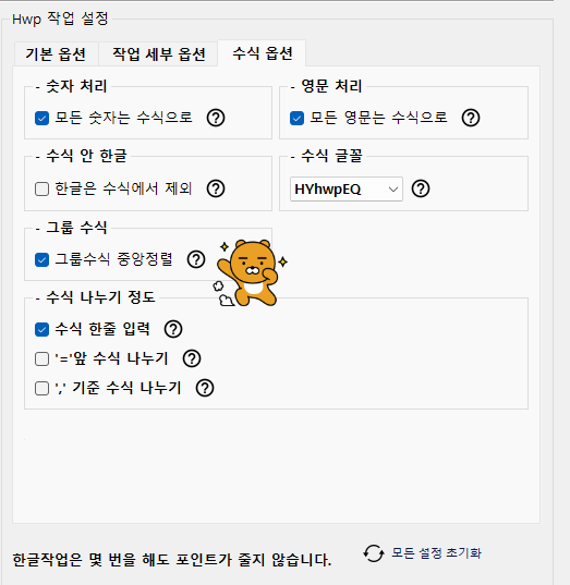 이 옵션은 수식 옵션 내에 있습니다. ^^!