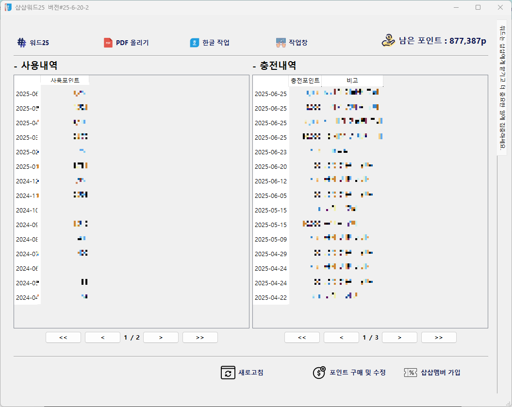 샵샵워드25 업데이트 기록