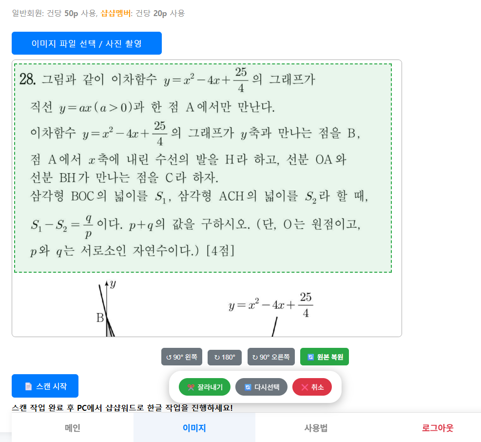 - 이미지(사진, 스캔본 등)에서 수식·텍스트 · 표 등을 추출 (이미지 속에 이미지나, 그래프는 인식하지 못합니다.)