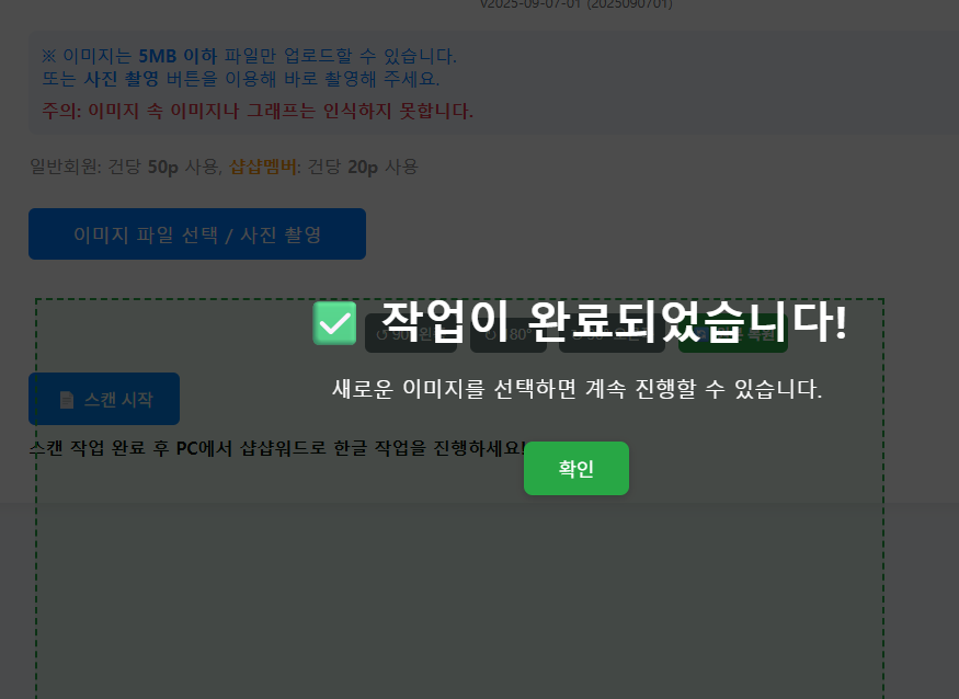 - 샵샵멤버: 이미지 1건당 20P 차감