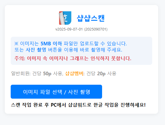 샵샵스캔은 샵샵워드 25-9-5-1 이후 버전부터 연동이 가능합니다.