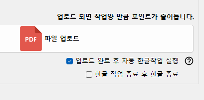 샵샵워드의 PDF올리기 창에서 "업로드 완료 후 자동 한글작업 실행" 을 클릭해두시면
