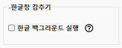 한글 백그라운드 실행 옵션은 기본값이 미설정입니다.