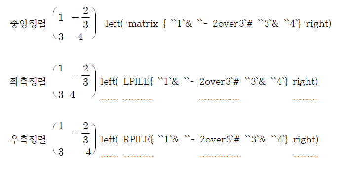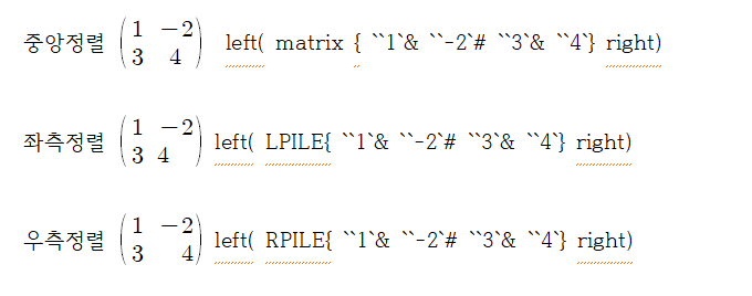 하지만 한글에서 matrix 는 세로 정렬값이 중앙정렬로 되어 있지만