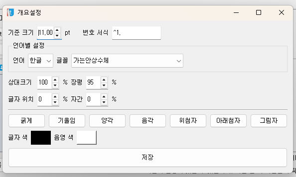 한글에서 설정가능한 거의 모든 기능을 설정하실 수 있습니다.
