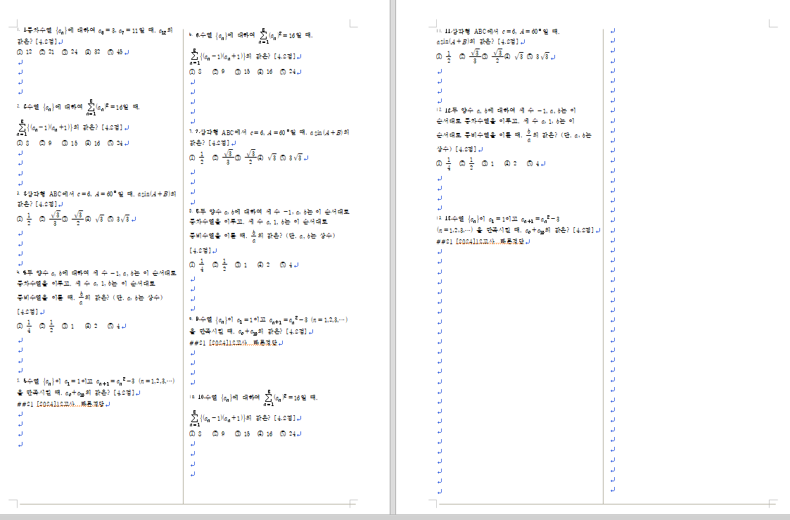문제간 간격(3~12줄)을 정해 문제간격을 일정하게 하는 방법과