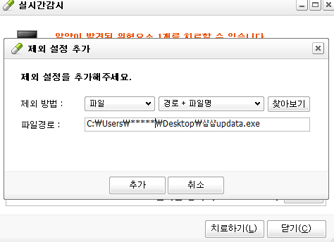 혹 불안하시면 일단 제외하고 받은 프로그램을 백신 돌러보셔도 됩니다.