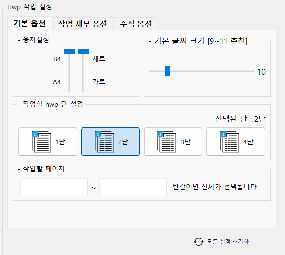 예를 들어 PDF는 2단인데 한글은 1단으로 작업할 수 있습니다.