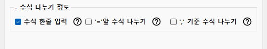 체크하면 수식 안에 한글이 있는 경우 수식을 나눠 한글을 수식에서 빼냅니다.