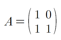 A= left ( matrix {1 & 0`# 1 & 1} right ) 표현을 하면..