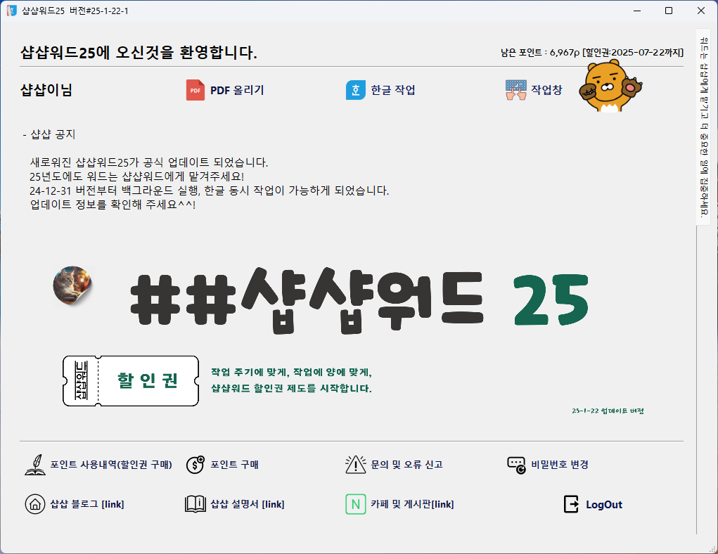 25-3-19-1 업데이트부터 샵샵 멤버권으로 명칭이 변경되었습니다. 아래의 이미지들는 할인권으로 되어 있는 점 참고해주세요.