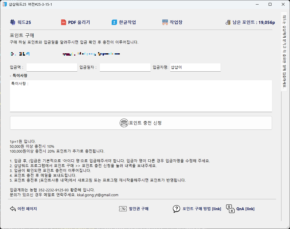 2. 포인트 충전 메뉴에 입금자명 란이 추가되었습니다.
