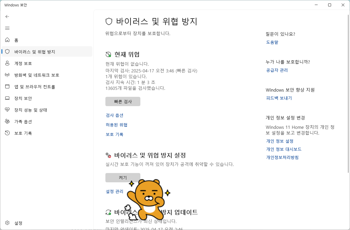 실시간 보호 해제 다운로드 후 다시 실행해 주시면 됩니다.