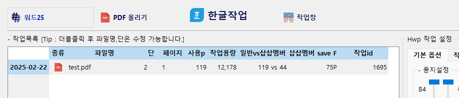 한글 작업 창에서 포인트를 비교해서 보실 수 있습니다.